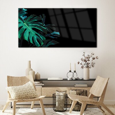 - Obraz na skle Zelené listy na černém pozadí