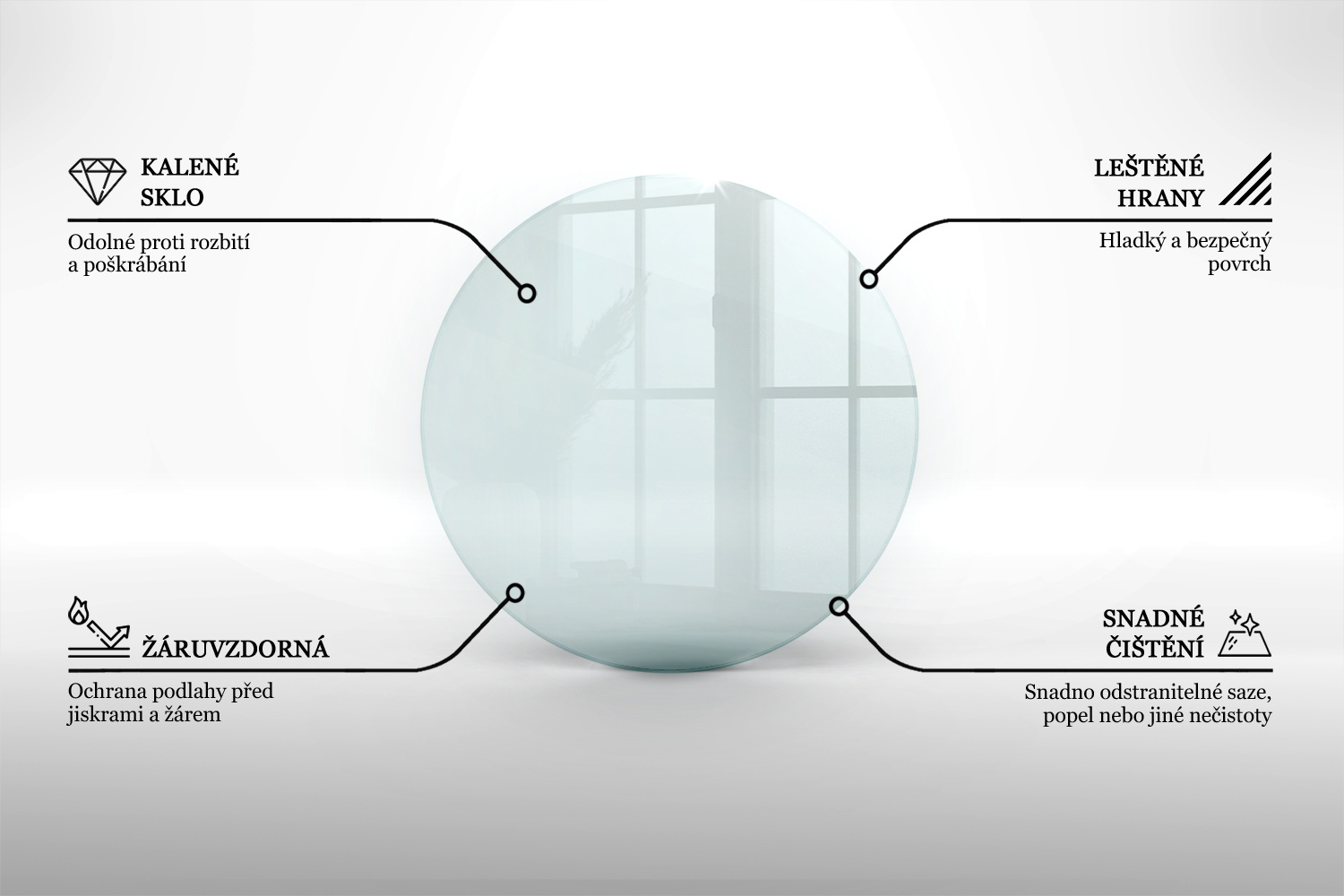 - Okrúhla Podložka pod krbová kamna průhledný