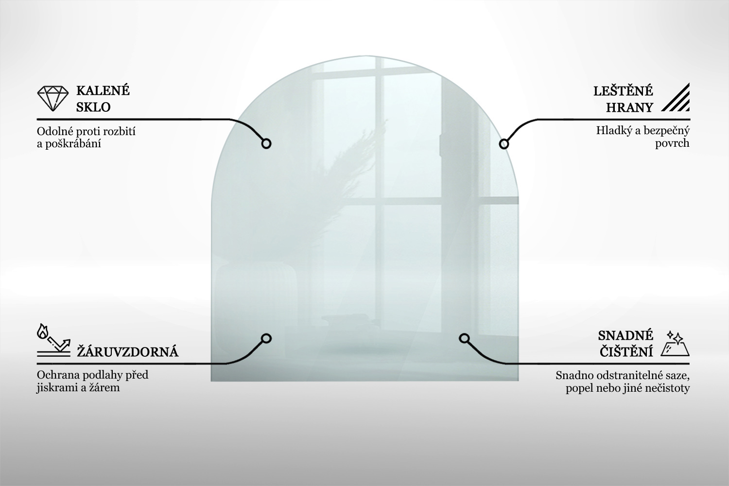 Sklo před krb průhledný je krásný dekorativní prvek, který vnese do vašeho interiéru eleganci a nevšední vzhled s vkusem. Díky minimalistickému designu se skvěle hodí téměř do jakéhokoli aranžmá - do moderních i klasických interiérů. Průhledný povrch jemně odráží světlo a dodává útulnost a trochu půvabu každé místnosti, ve které je krb umístěn. Zvolte tuto kombinaci funkčnosti a estetiky. Rozhodněte se pro praktický a krásný doplněk vašeho prostoru. Moderní design v neregulérním tvaru je mimořádně estetický a elegantní. V nabídce máme dvě velikosti: 100x100 cm a 80x70 cm.